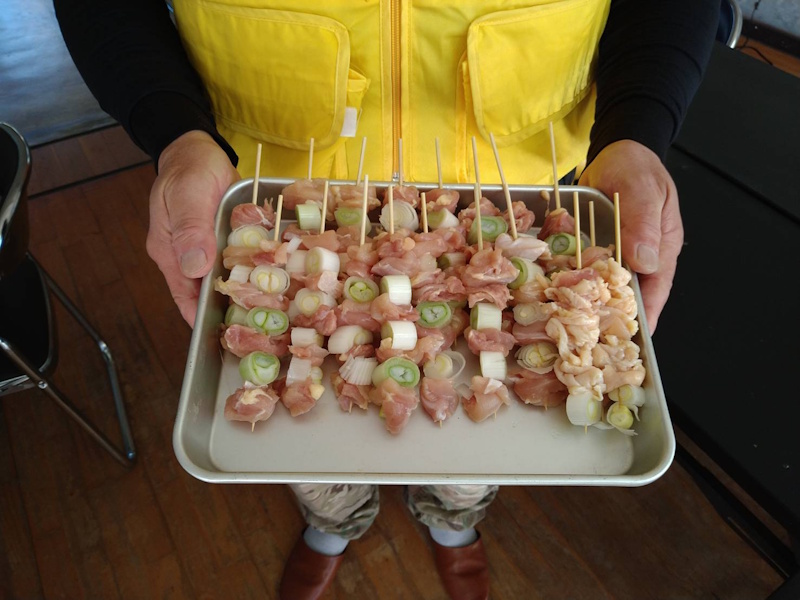 5.珠洲市 スズズカ(エントランスにて、本日振る舞う予定の焼き鳥、うなぎを炭火にて調理)